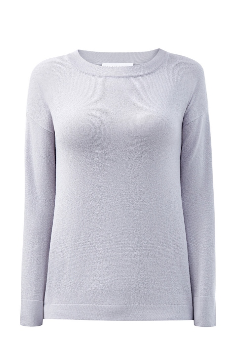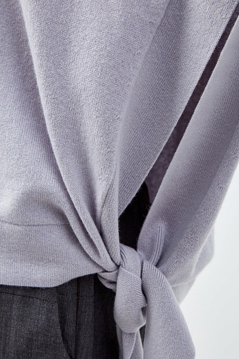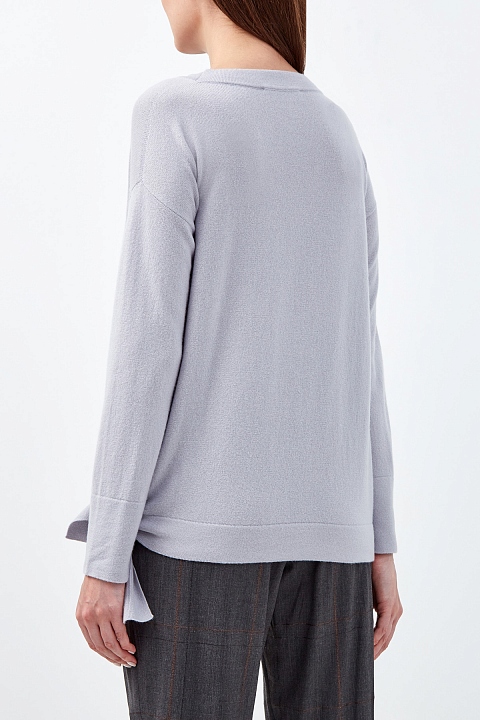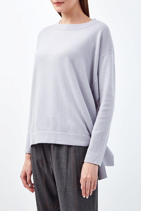 Джемпер свободного кроя от Fabiana Filippi выполнен из теплой шерстяной пряжи Platinum. Нить кашемира делает ткань действительно теплой. Модель создана в пастельном оттенке лаванды, расслабленный крой дополнен завязками сбоку и спущенной линией плеч. Детали: круглый вырез горловины, длинные рукава, уплотненные кромки с бесшовной обработкой. Сделано в Италии.