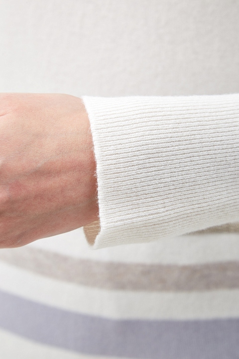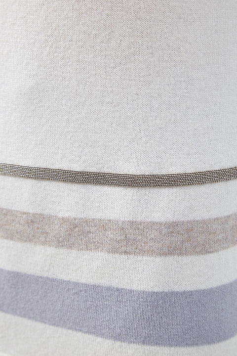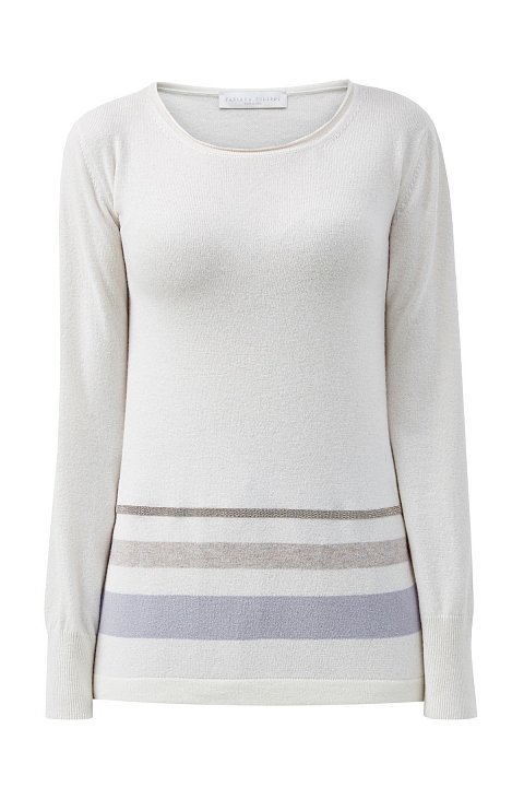 Джемпер от Fabiana Filippi выполнен в кремовом оттенке из пряжи Platinum на основе шерсти мериноса, кашемира и шелка. Полностью натуральный состав делает модель особенно актуальной в холодный сезон. Свободный силуэт не стесняет движений, а отделка в виде полос идеально подходит для создания гармоничных образов. Детали: вышивка из мерцающих бусин, манжеты и нижний край в рубчик. Сделано в Италии.