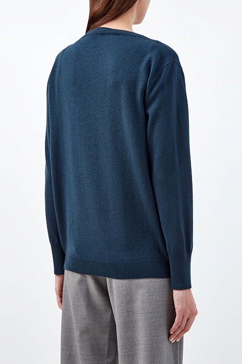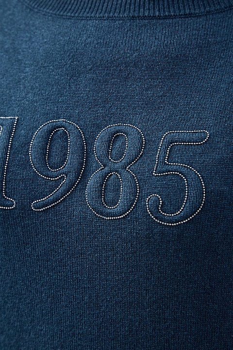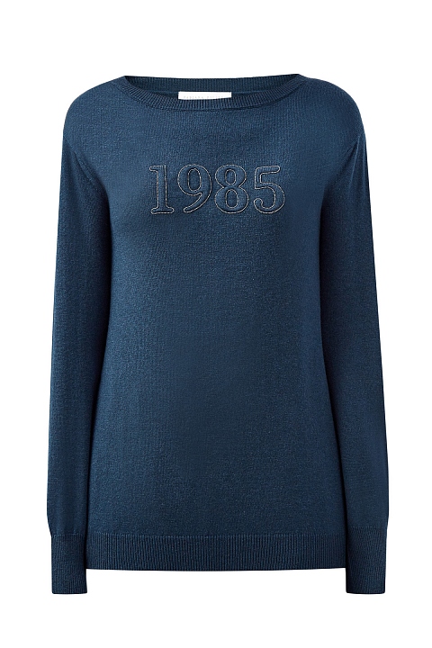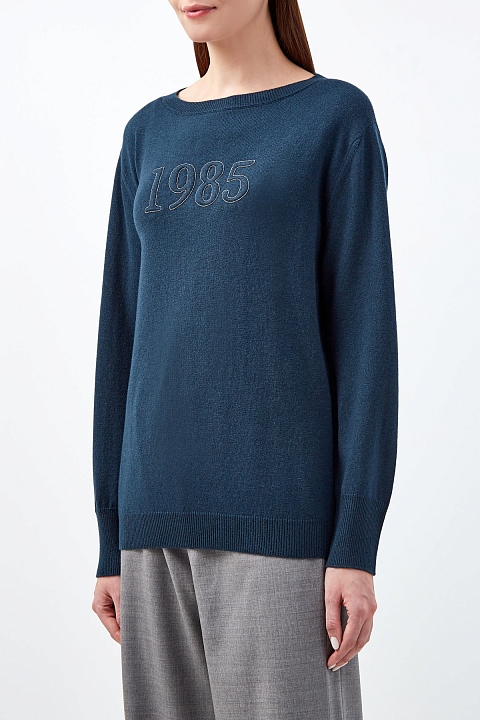 Базовый женский джемпер от Fabiana Filippi выполнен из фирменной пряжи Platinum на основе шерсти мериноса, кашемира и шелка. Техника гладкой вязки подчеркивает матовую фактуру материала. Изделие в глубоком оттенке изумруда дополнено объемным принтом «1985» — год создания бренда. Модель комфортного кроя с длинными рукавами, круглой проймой горловины и эластичной окантовкой нижнего края. Сделано в Италии.