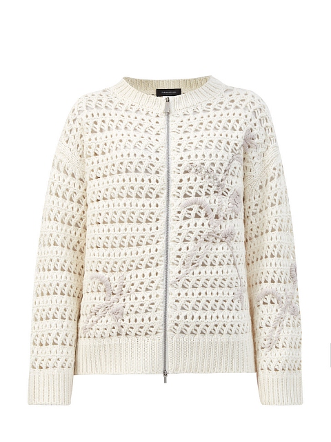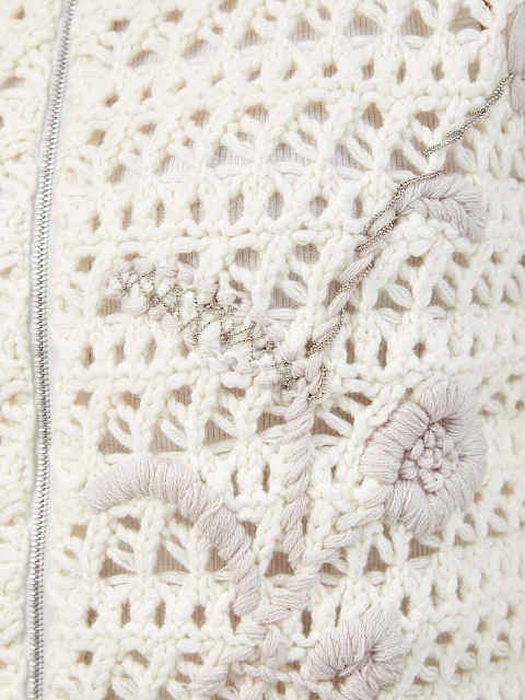 Кардиган из узорной пряжи Platinum с вышивкой макраме