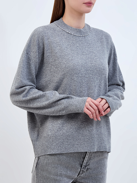 Джемпер из шерсти, шелка и кашемира с мерцающей окантовкой