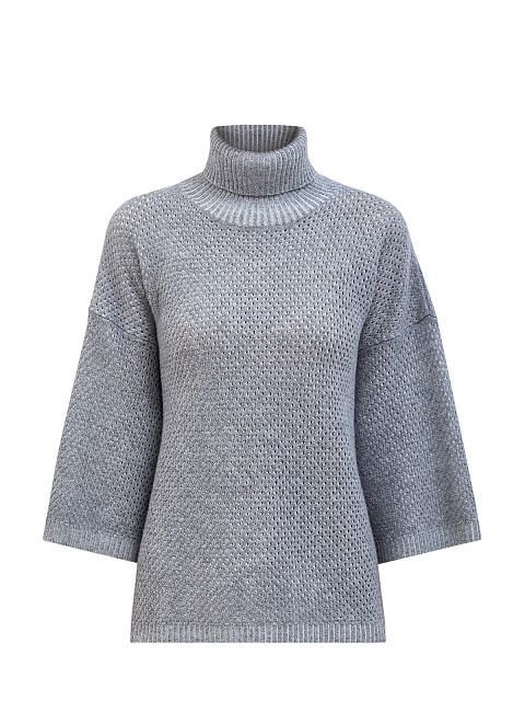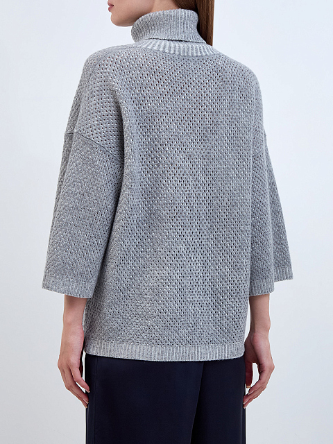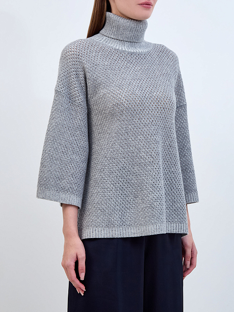 Женский свитер в пепельно-серой гамме от Fabiana Filippi выполнен из мягкой пряжи на основе шерсти, шелка и кашемира. Ценные свойства натурального материала обеспечивают тепло и комфорт. Техника узорной вязки, свободные рукава 3/4 и высокий ворот делают модель универсальным элементом расслабленных повседневных образов. Сделано в Италии.