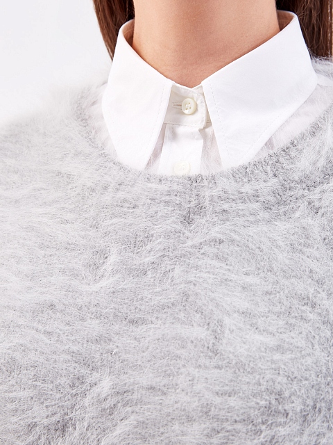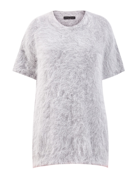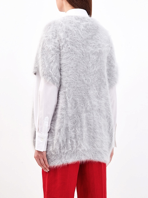 Стильный джемпер свободного кроя от Fabiana Filippi создан из фактурной шерсти ангоры. Мягкий материал придает поверхности оригинальный peach-эффект, лаконичный серый оттенок позволяет интегрировать модель в любой повседневный образ. Детали: круглый вырез горловины, короткие рукава. Сделано в Италии.