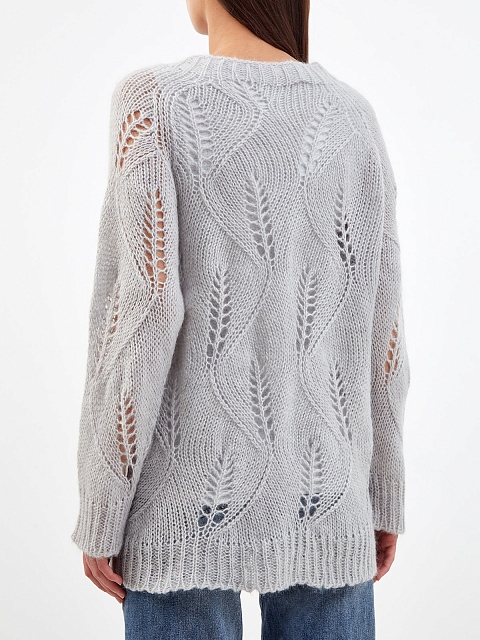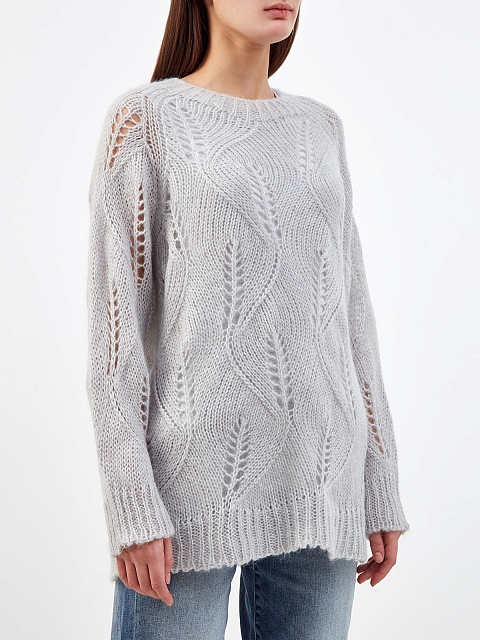Удлиненный джемпер узорной вязки из мохера и альпаки