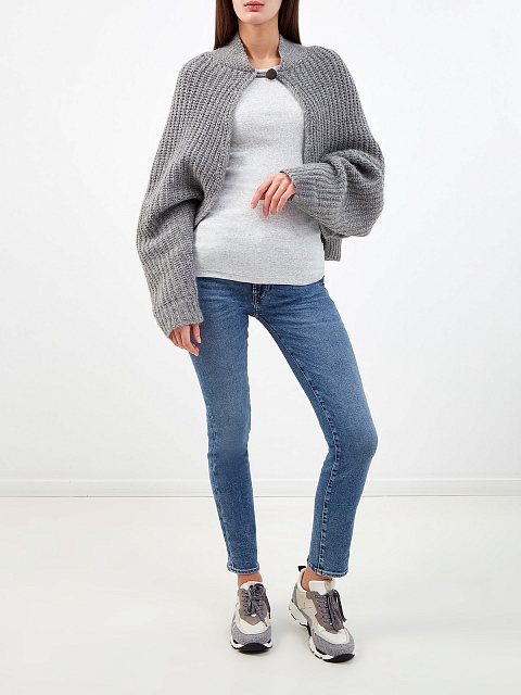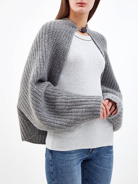 Кардиган из пряжи Platinum и мохера с кожаной пуговицей