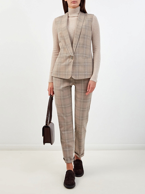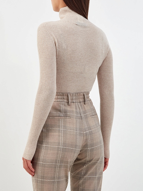 Водолазка в меланжево-бежевой гамме от Fabiana Filippi выполнена из тонкой пряжи на основе шерсти и кашемира, полностью натуральная ткань является легкой и теплой одновременно. Шелковая нить в составе придает поверхности нежное жемчужное мерцание. Облегающий крой с высоким воротом делает модель универсальной базой для составления многослойных образов. Сделано в Италии.