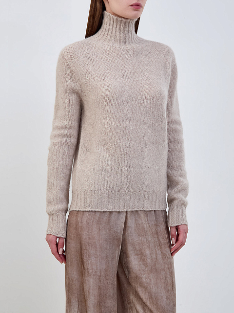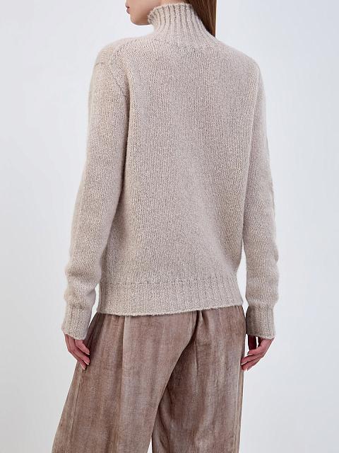 Свитер из альпаки и кашемира с воротом английской вязки