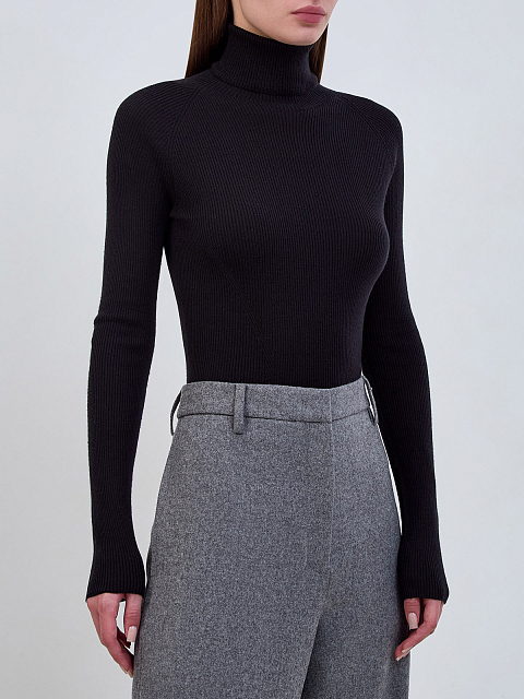 Водолазка из шерсти и шелка в английскую резинку
