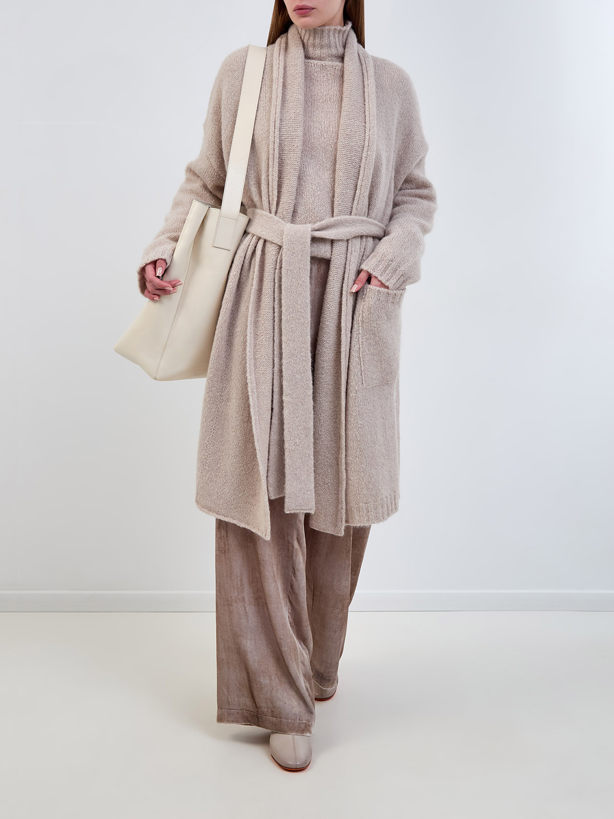 Удлиненный кардиган из альпаки и кашемира с поясом
