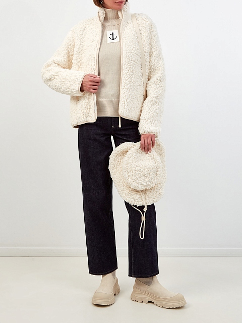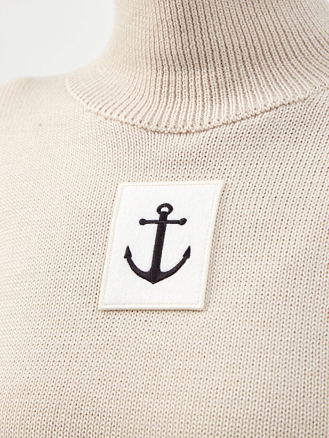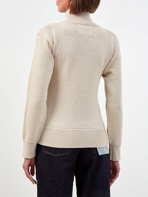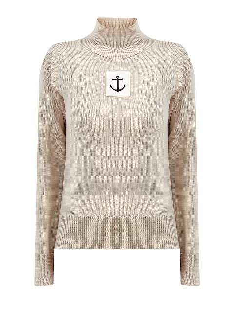 Тонкий женский свитер от Jil Sander выполнен из шерстяной пряжи, полностью натуральный состав обеспечивает тепло и комфорт. Однотонное исполнение и кромки в английскую резинку делают модель универсальным элементом расслабленных повседневных образов. Передняя планка дополнена нашивкой с контрастным вышитым узором в виде якоря.