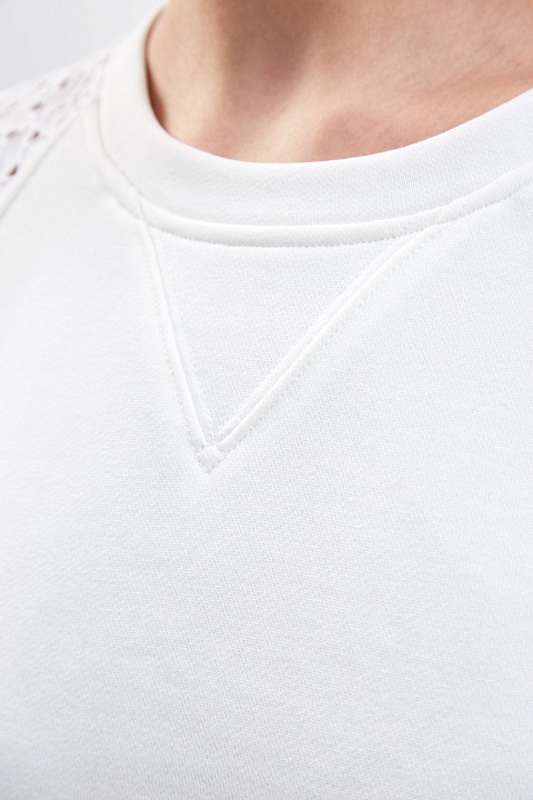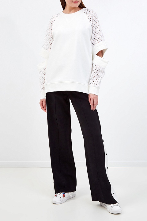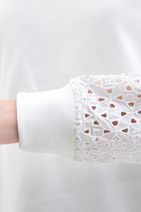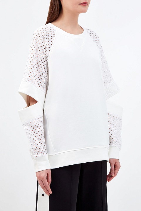 Свитшот из хлопка с кружевными рукавами с логотипом в тон