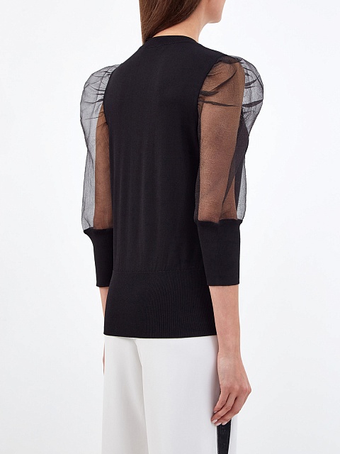 Однотонный джемпер с рукавами-фонариками из органзы