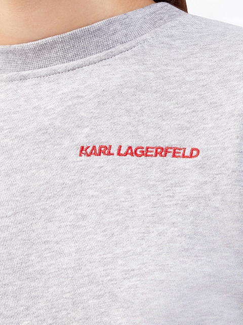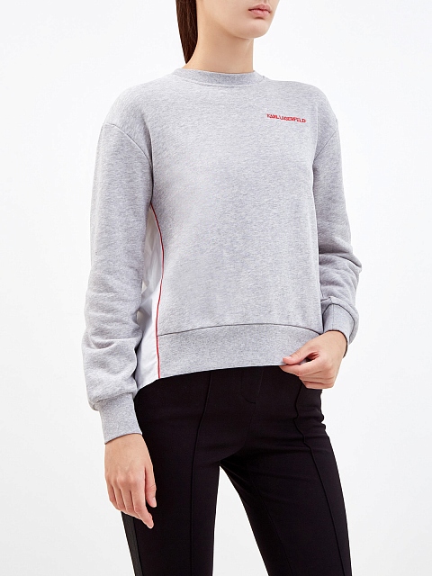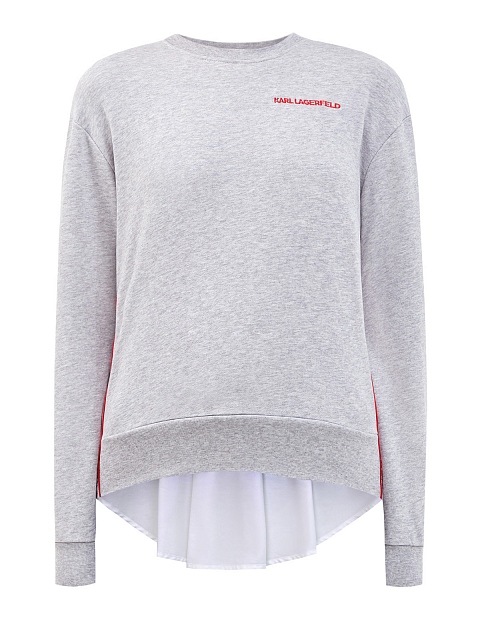 Эффектный свитшот от Karl Lagerfeld сочетает мягкий меланжевый хлопок и тонкий белоснежный поплин. Изделие с логотипом KARL яркого мандаринового оттенка, контрастным кантом вдоль боковых швов и плиссированной отделкой на спинке идеально подходит для создания расслабленных образов в стиле athleisure.