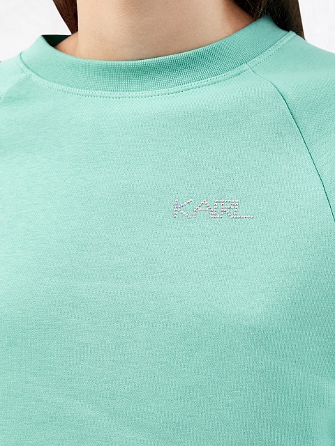 Базовый пуловер от Karl Lagerfeld. Модель представлена в базовом ментоловом оттенке, мягкий хлопковый футер с флисовой подкладкой подчеркивает архитектурные объемы кроя. Рукава-реглан и эластичная отделка манжет и нижнего края создает расслабленный oversize-силуэт и не стесняет движений. Детали: логотип Karl Future из кристаллов, вышитая монограмма на спинке.