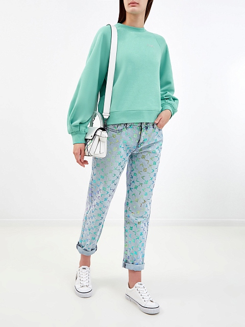 Свитшот из хлопкового футера с объемными рукавами