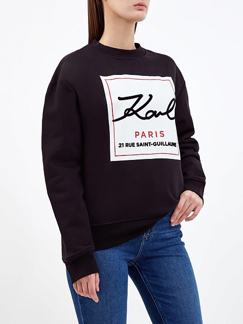Свитшот из хлопкового футера с макро-принтом и аппликацией