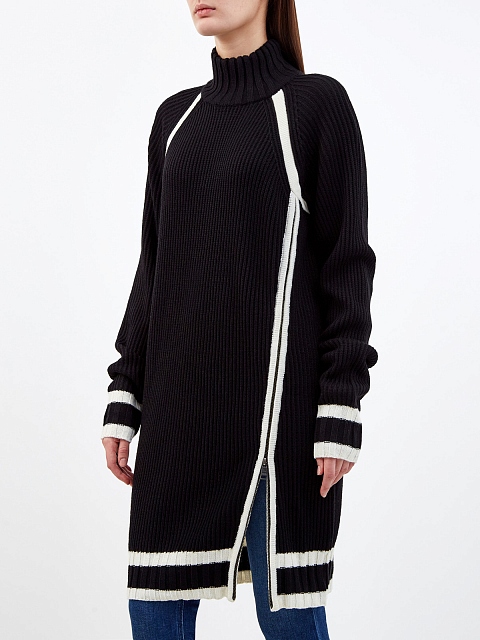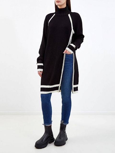 Удлиненный джемпер из мягкой шерсти с контрастной отделкой