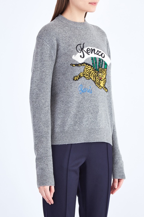 Джемпер из шерсти с аппликацией «Bamboo Tiger» в контрастных тонах