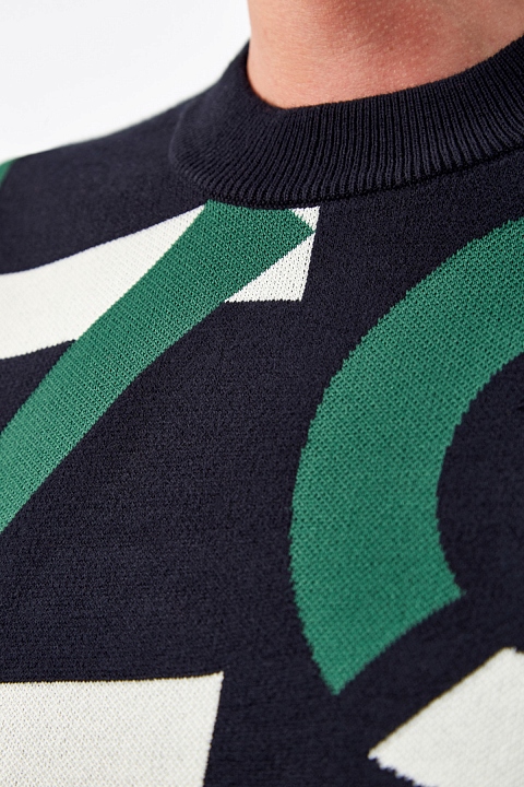 Укороченный джемпер из хлопковой пряжи с интарсийным мотивом