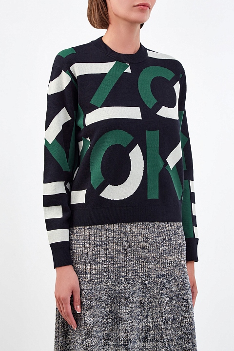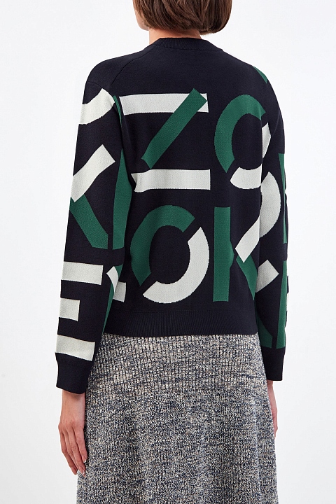 Укороченный женский джемпер из эксклюзивной линии Sport от Kenzo создан в базовом черном цвете. Износостойкий материал на основе мягкого хлопка и технологичного нейлона повторяет движения тела и не образует складок. Контрастный принт с монограммой бренда в стиле леттеринг по всей поверхности изделия придает образу динамичный акцент. Детали: длинные рукава, круглый вырез горловины, эластичная отделка кромок из трикотажа.