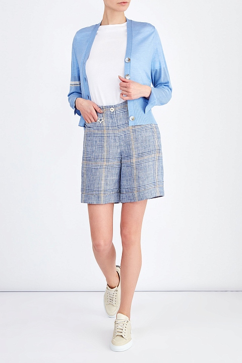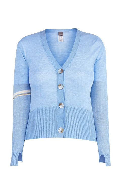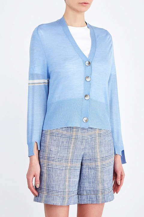 Однотонный кардиган из шерсти и шелка с контрастными пуговицами