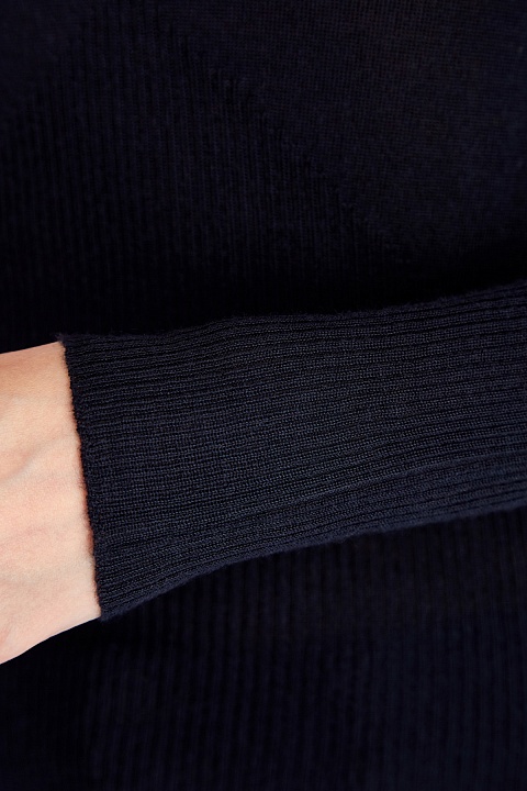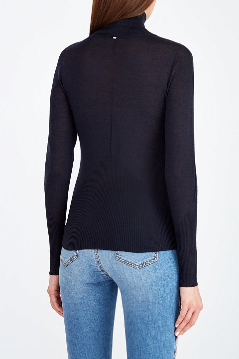 Приталенная водолазка Lorena Antoniazzi в черном оттенке создана из благородного кашемира. Особый вид прядения делает изделие невесомым и гладким. Фактурная эластичная вязка завершает нижнюю кромку изделия и рукава. Геометрическое оформление и высокий ворот расставляют акценты в монотоне. Символика бренда на спинке вносит сияющий штрих. Сделано в Италии.