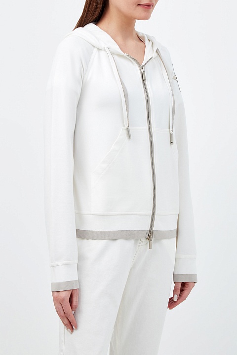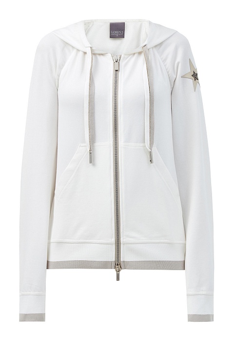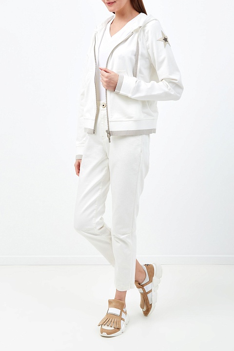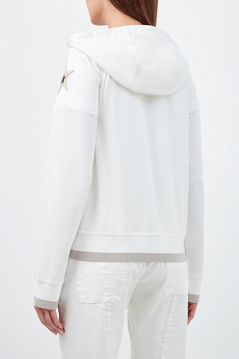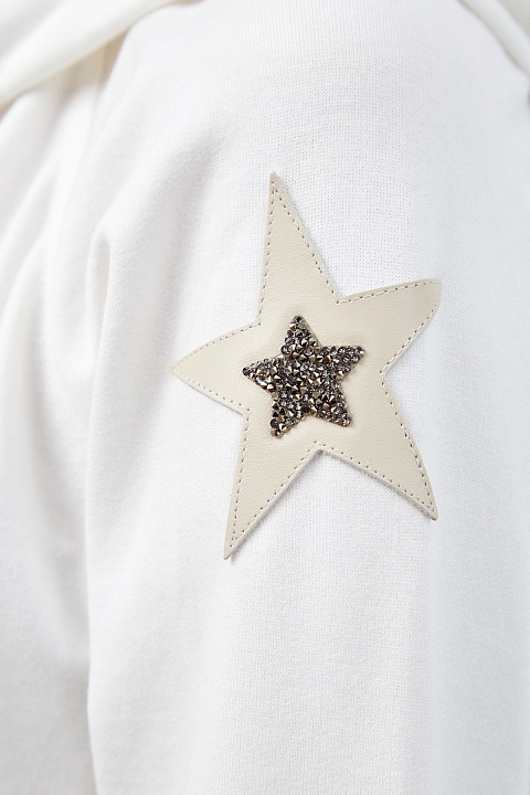 Хлопковая толстовка с аппликацией из кожи и кристаллов