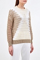 Джемпер ажурной вязки от Lorena Antoniazzi создан из хлопковой пряжи в золотисто-бежевой гамме. Свободный крой со спущенной линией плеч и эластичной отделкой кромок делает модель универсальным элементом для составления многослойных образов. Детали: круглый вырез горловины, длинные рукава, трехцветный геометрический принт. Сделано в Италии.