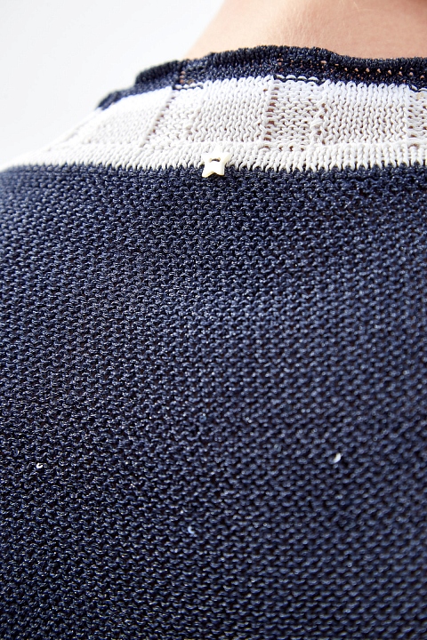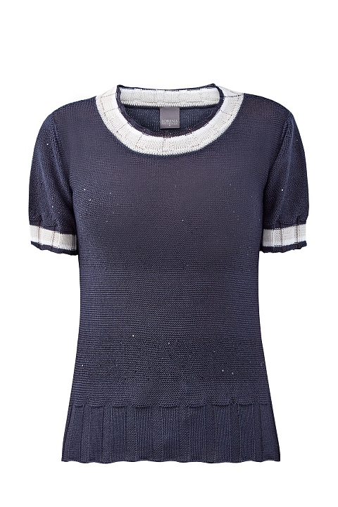 Базовый джемпер комфортного oversize-кроя от Lorena Antoniazzi создан в оттенке ночного неба из хлопковой пряжи с характерной плотной фактурой. Модель в стиле colorblock дополнена контрастной отделкой кромок, нежное мерцание поверхности придают вплетенные пайетки. Детали: короткие рукава, круглая пройма горловины, края окантованы широкой резинкой в фактурный рубчик. Сделано в Италии.