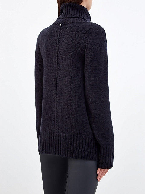 Лаконичный женский свитер в элегантном черном цвете от Lorena Antoniazzi полностью выполнен из теплой кашемировой пряжи. Вязка в чулочной технике и отделка кромок в рубчик подчеркивают фактуру натурального материала. Декоративные внешние швы вносят в образ неформальный штрих, свободный силуэт и спущенная линия плеч придают расслабленное настроение. Детали: высокий ворот, фирменная символика на спинке. Сделано в Италии.
