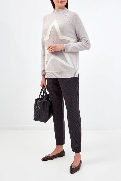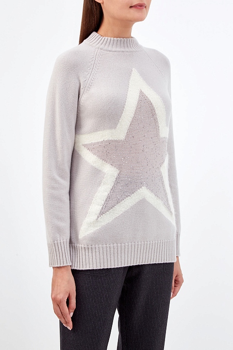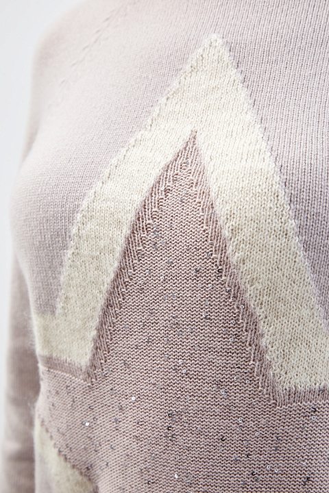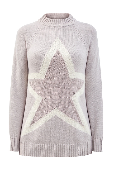 Элегантный женский джемпер от Lorena Antoniazzi создан из мягкой пряжи на основе шерсти, шелка и кашемира. Комфортный материал в бежевой гамме идеально подходит для составления повседневных образов. Фирменный штрих — фактурный узор в виде звезды с отделкой полупрозрачными пайетками. Детали: длинные рукава-реглан, эластичная отделка кромок в рубчик. Сделано в Италии.