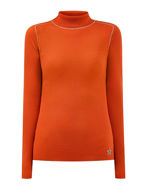 Стильная водолазка от Lorena Antoniazzi полностью выполнена из мягкой шерстяной пряжи. Модель яркого морковного оттенка дополнена вышитой контрастной отделкой — частью символики бренда. Высокий ворот и длинные рукава не позволяют холодному воздуху проникать внутрь. Детали: звезда из кристаллов Swarovski, приталенный крой. Сделано в Италии.