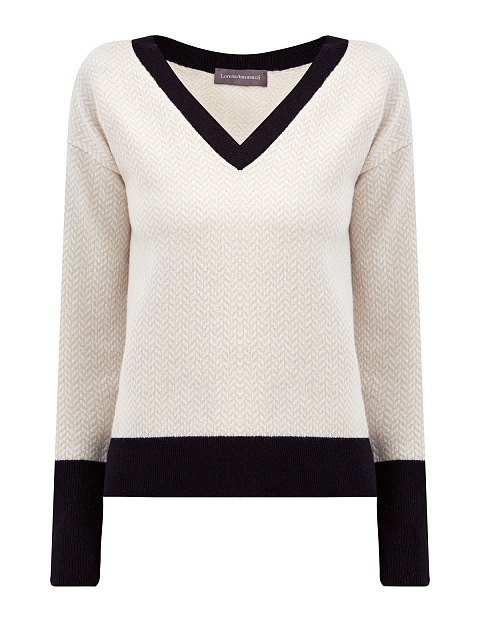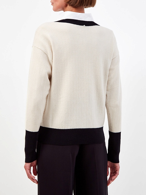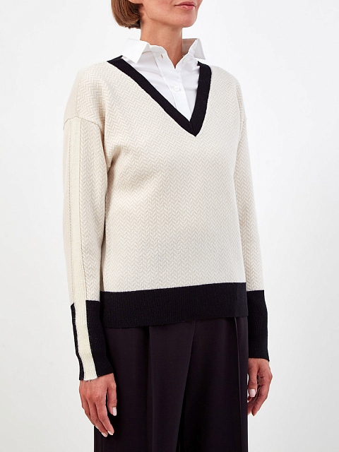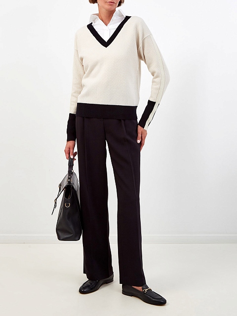 Пуловер из шерсти, кашемира и шелка с контрастной отделкой