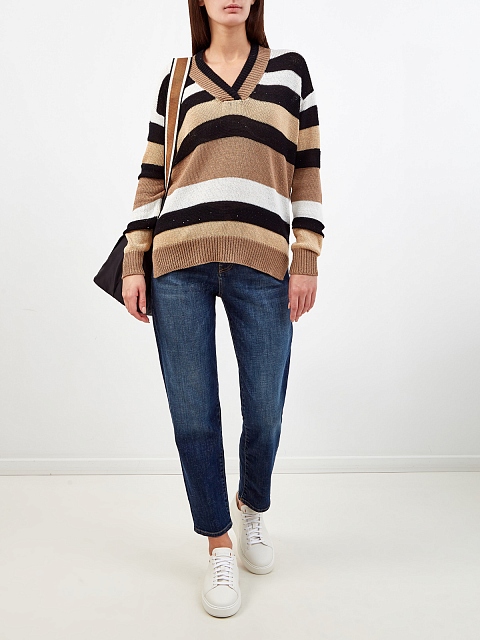 Джемпер тонкой вязки с интарсийным узором и пайетками
