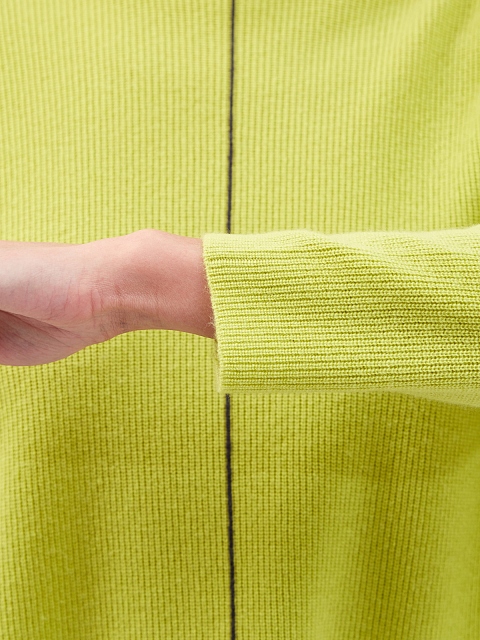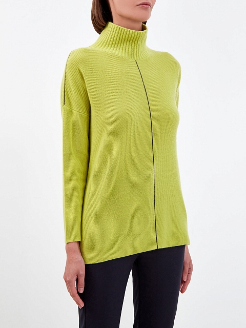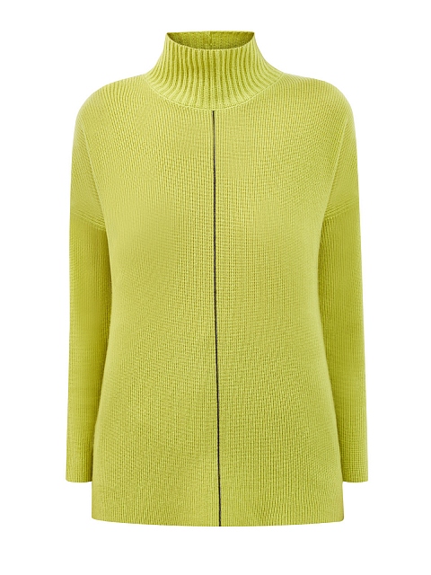 Яркий свитер от Lorena Antoniazzi представлен в оттенке киви. Полностью натуральный состав на основе шерсти и кашемира обеспечивают тепло и комфорт, вязка в рубчик придает модели дополнительную плотность. Контрастный акцент — полоса вдоль передней планки. Детали: длинные рукава на спущенной линии плеч, высокий ворот. Сделано в Италии.