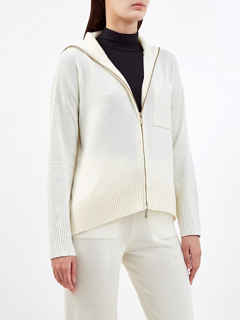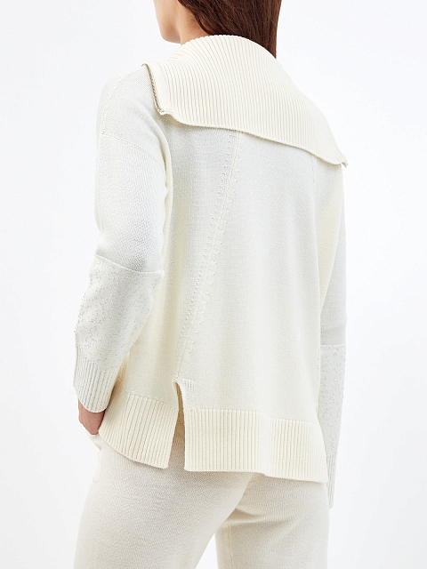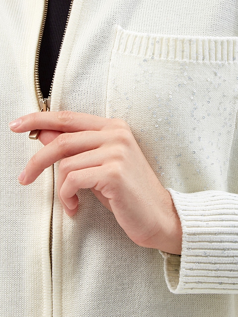 Кардиган из шерстяной пряжи с отложным воротом и пайетками