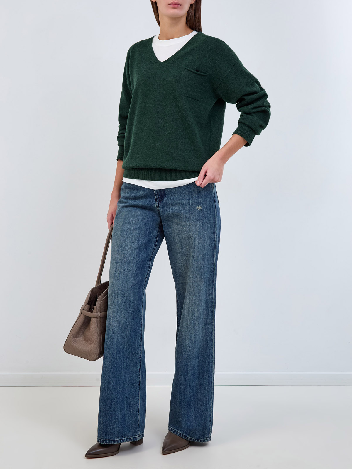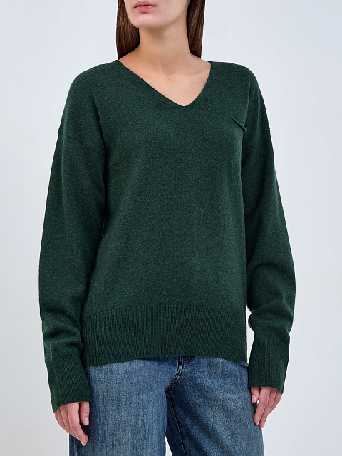 Пуловер из шерсти, кашемира и шелка с кармашком