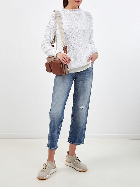 Джемпер узорной вязки с мерцающими пайетками