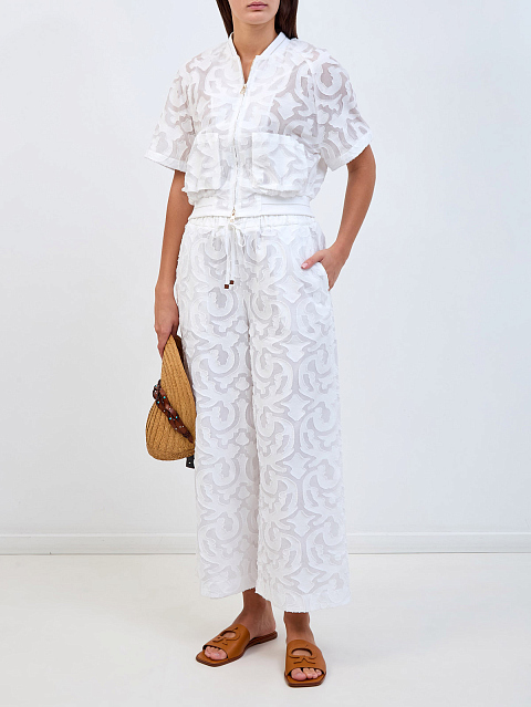 Бомбер из полупрозрачного хлопка с фактурным узором и символикой