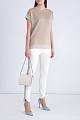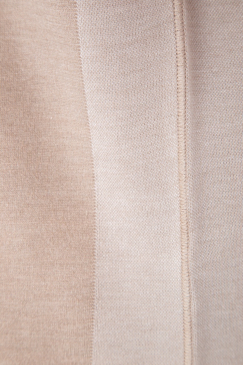 Лаконичный женский джемпер из весенне-летней коллекции Maison Ullens выполнен из нежного кашемира и мягкого шелка в песочно-бежевом оттенке. Круглый вырез декольте, окантованный объемной тесьмой, а также асимметричный нижний край создают расслабленный образ, а боковые швы, кромки цельнокроеных рукавов и нижние кромки изделия с контрастной окантовкой усиливают впечатление. Сделано во Франции.