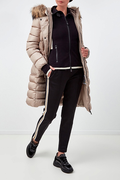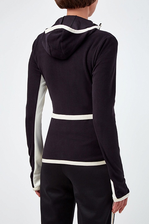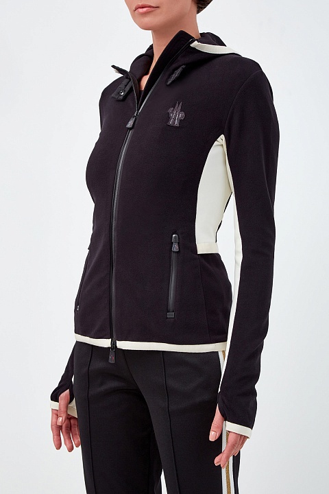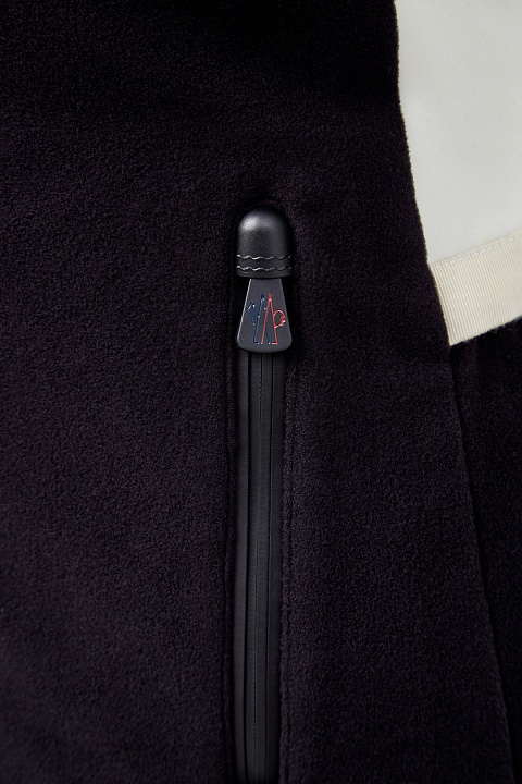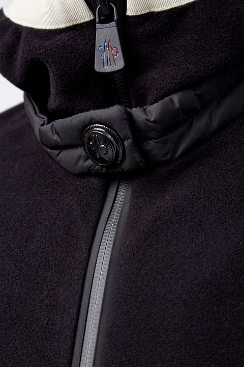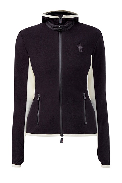 Толстовка из линии Grenoble от Moncler выполнена из эластичного флиса — теплый и мягкий материал идеально подходит для занятий активными видами отдыха. Функциональный дизайн предусматривает манжеты с прорезями для больших пальцев, а также вставки из прочного нейлона в местах наибольшего истирания. Стильным акцентом в образе стала застежка на воротнике. Детали: капюшон, отделка швов контрастной тесьмой, два кармана.