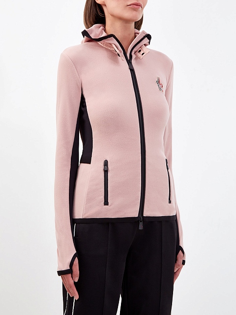 Эффектная женская толстовка облегающего кроя из линии «Performance & Style» Grenoble от Moncler. Модель в пудрово-розовом оттенке создана из эластичного флиса, влаго- и ветронепроницаемые вставки обеспечивают максимальный комфорт. Контрастная отделка подчеркивает динамичный стиль изделия, фирменный логотип бренда на передней планке завершает дизайн. Детали: длинные рукава с митенками, застежка на водостойкую молнию с двойным пуллером, прорезные карманы, глубокий капюшон.