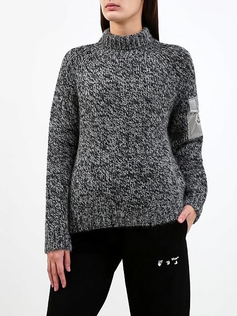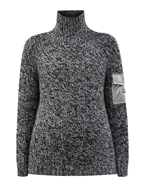 Классический джемпер от Moncler выполнен из мягкой пряжи на основе шерсти и альпаки. Модель фактурной вязки в меланжево-серой гамме дополнена культовой деталью — карманом из ламинированной ткани с фетровым логотипом на рукаве. Высокий ворот и эластичные кромки надежно защищают от ветра.