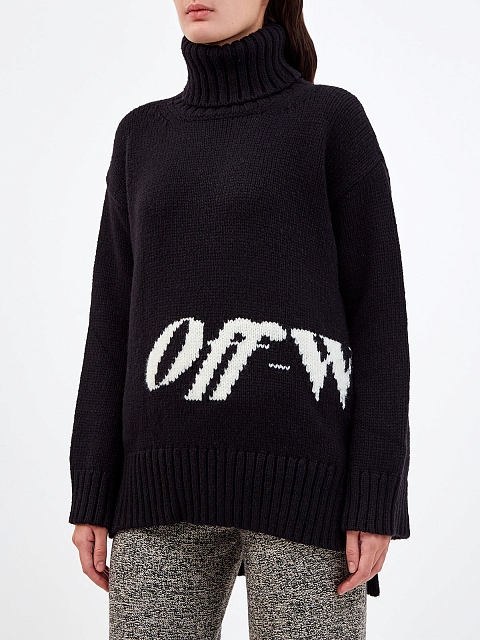 Свитер из шерстяной пряжи с разрезами и макро-принтом