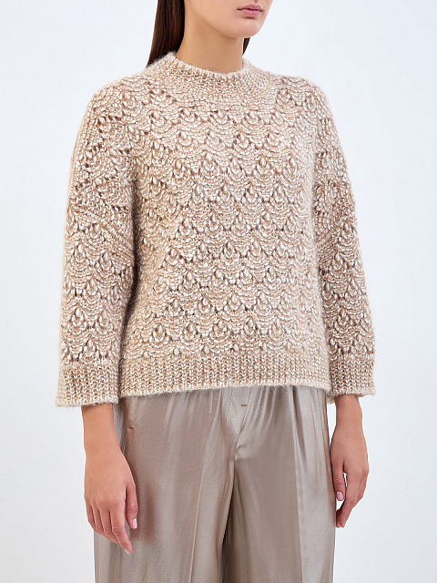 Джемпер узорной вязки из мягкой шерсти альпака с пайетками