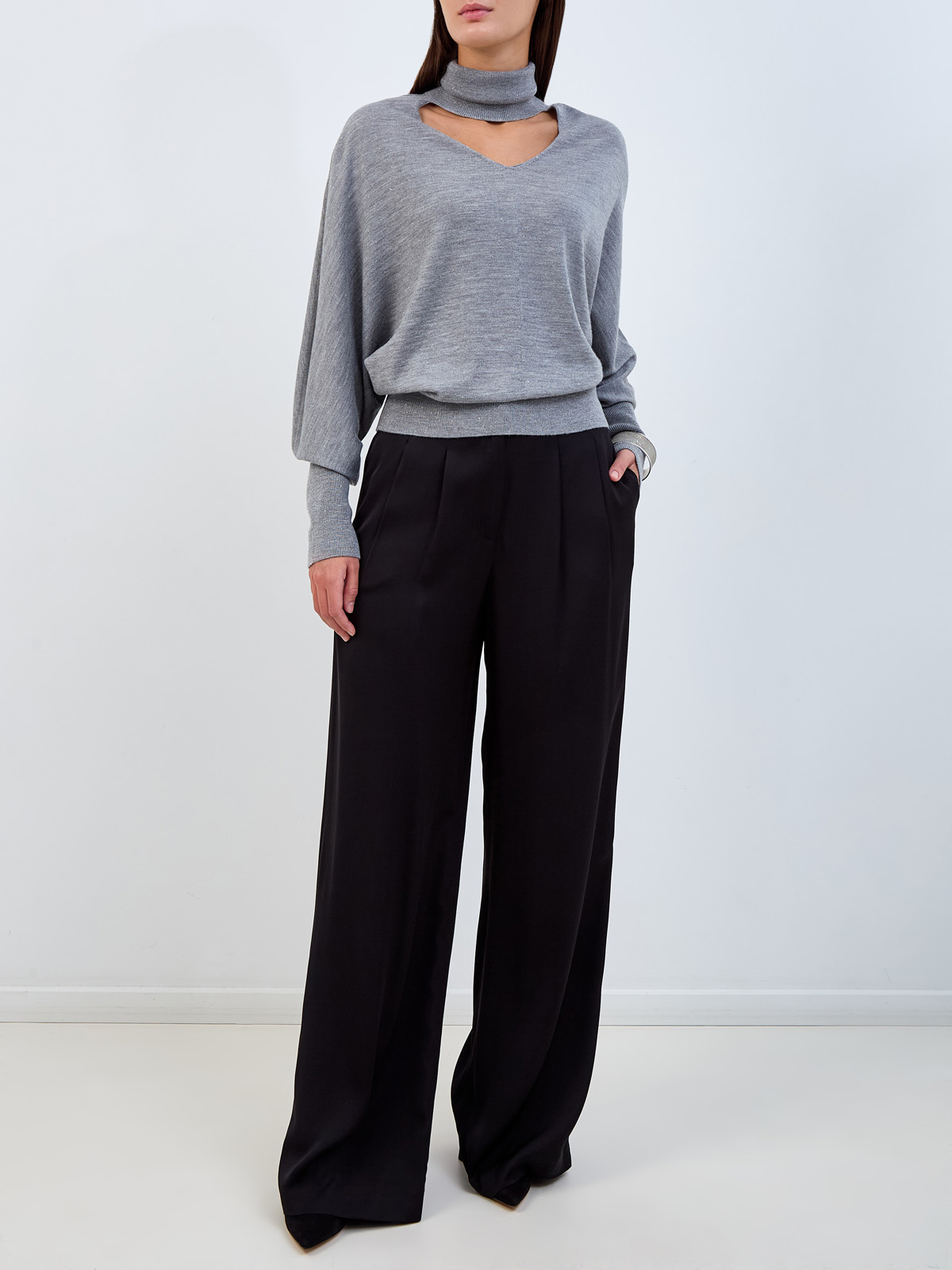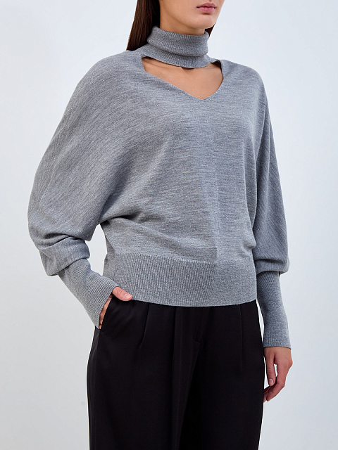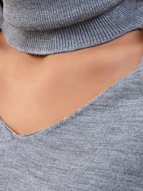 Пуловер с V-образным вырезом и металлизированной нитью ламе