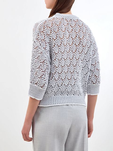 Джемпер ажурной вязки в технике макраме с нитью ламе