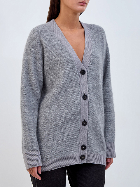 Удлиненный кардиган из шерсти мериноса и альпаки с нитью ламе