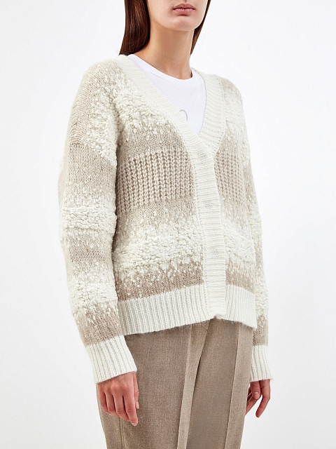 Кардиган из мягкой шерсти и шелка с мерцающим декором