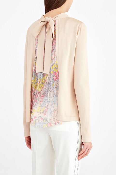 Хлопковый джемпер с плиссированной вставкой из шифона и бантом